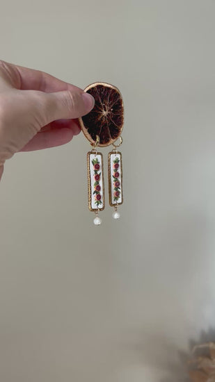Inspired by cherished holiday traditions, these earrings feature intricately detailed blood orange slice designs paired with lustrous pearl charms. The vintage aesthetic draws from classic garland ornamentation, translating nostalgic elegance into refined jewelry. Rich crimson hues complement the soft luminescence of pearls, creating a sophisticated accessory that celebrates artisanal craftsmanship. Ideal for those seeking distinctive pieces that merge seasonal sentiment with timeless style.